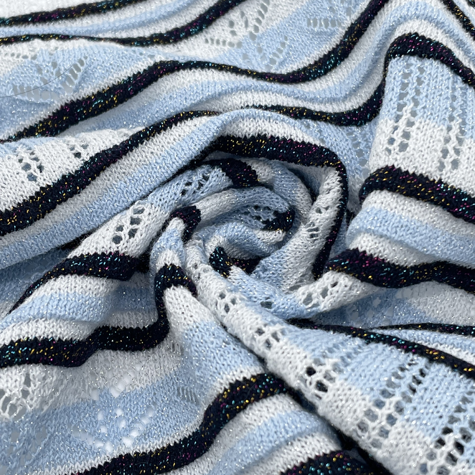• 产品描述:1/35NM 79%棉(再生/有机/BCI)21%Lurex金银丝混纺纱,强力32cN/tex。理念:可持续奢华(再生棉闭环+Lurex低耗镀膜)。应用:轻奢针织衫(起球4级)、舞台演出服(反射率≥85%)、环保礼品包装(降解率70%)。优势:成本降50%、抗静电、双认证(GRS+OEKO-TEX®)。Q&A:1. 别称:EcoLurex纱、GlowRecycle混纺;2. 镀层:通过EN71-3;3. 洗涤:30℃手洗;4. 棉源:需BCI证书;5. 市场:2024设计师品牌采用+35%。关键词:1/35NM金银丝纱、再生棉混纺、真空镀膜。