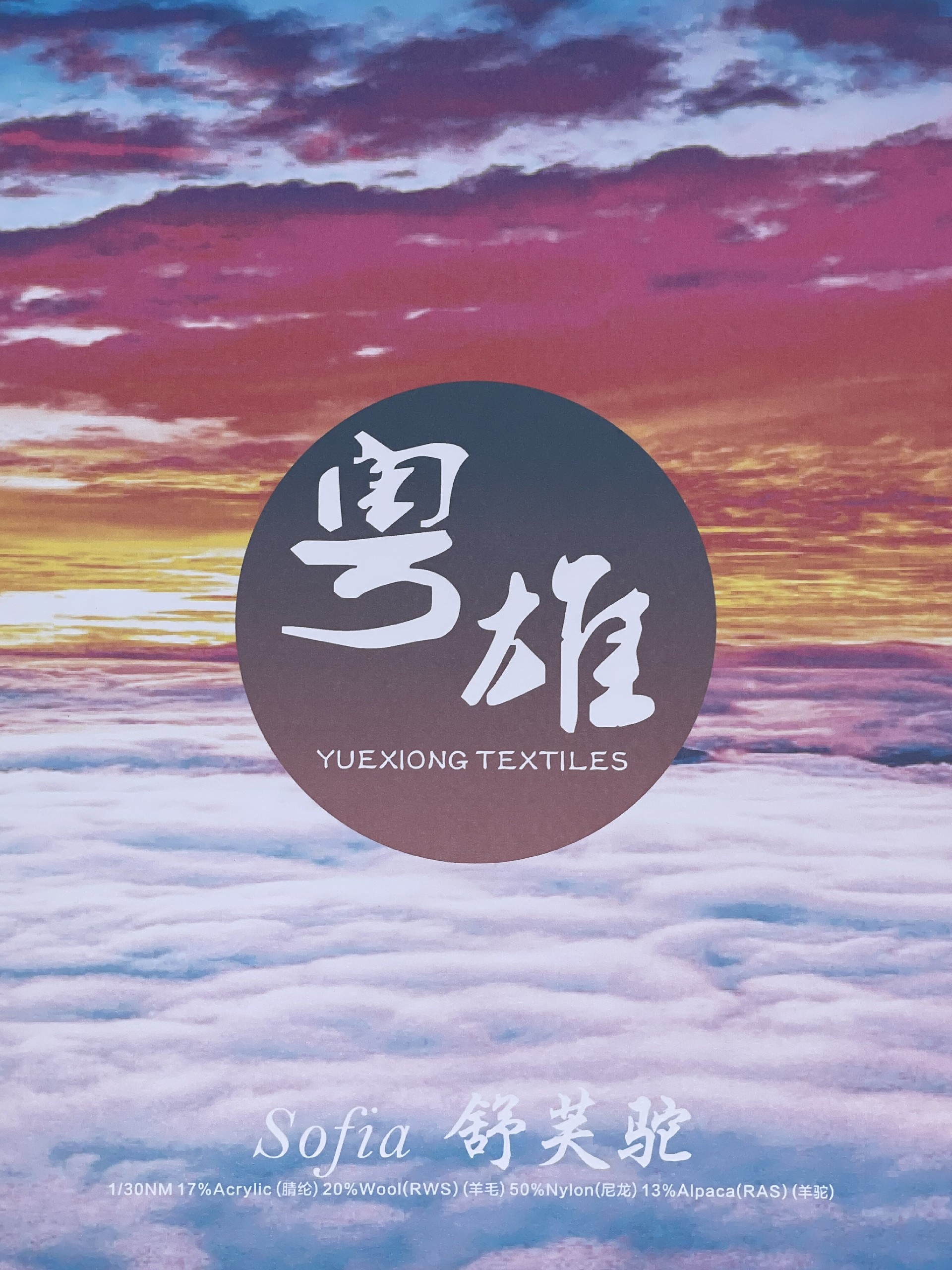 • 产品描述:1/30NM 13%RAS羊驼毛20%RWS羊毛17%腈纶50%尼龙混纺纱,采用18μm羊驼毛(RAS认证)、19.5μm羊毛(RWS认证)、1.2dtex腈纶与1.5dtex尼龙混纺,涡流纺工艺强力45cN/tex。开发理念为“四维性能平衡”:羊驼毛提升光泽度(反射率↑25%),羊毛增强保暖性(0.033W/m·K),腈纶降本18%,尼龙耐磨(马丁代尔15,000次)。应用:奢侈大衣(抗起球4.5级)、功能运动服(湿度调节)、工业用布(耐磨6级)。优势:-10℃强度保留率90%、双认证(RAS+RWS)、成本降22%。Q&A:1. 别称:LuxuryFusion纱、AlpineBlend混纺;2. 羊驼毛作用:提升垂坠感(悬垂系数↑30%);3. 极端气候:-15℃保持柔韧性;4. 染色:低温染程节能25%;5. 市场:2024高端户外采购量+28%。关键词:RAS/RWS双认证纱、1/30NM功能面料、四元混纺工艺