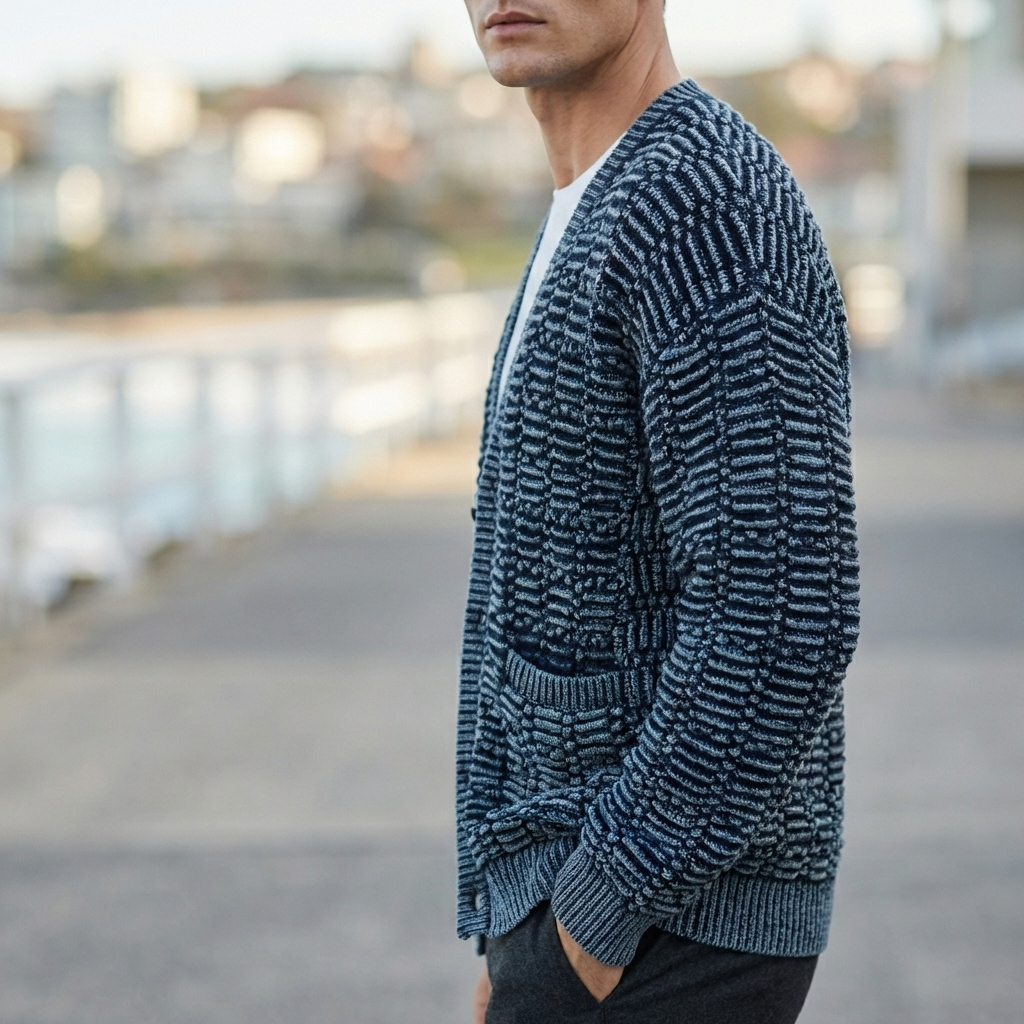 石磨丹宁针织开衫 石磨酵洗针织工艺 YX935